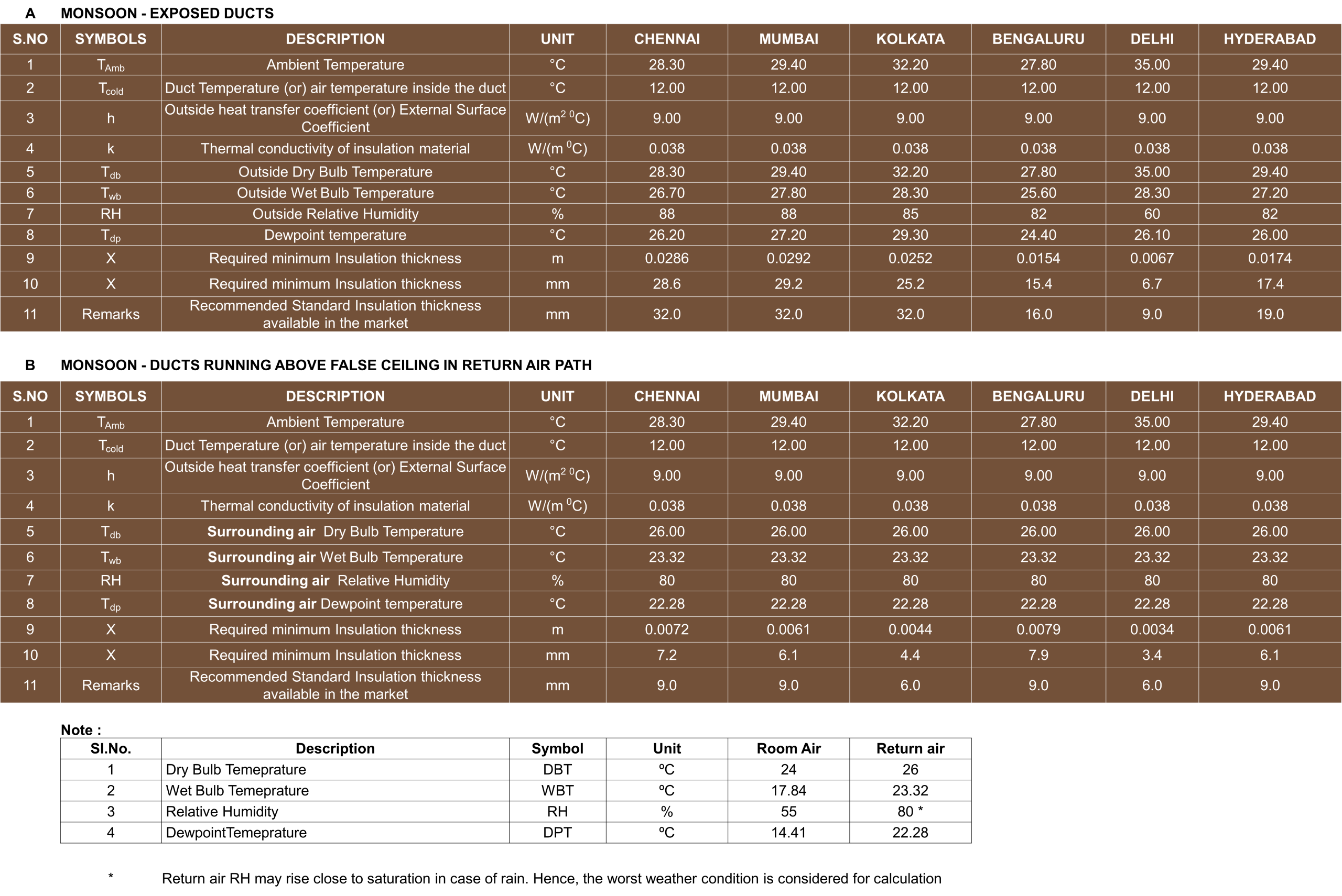 The duct thermal insulation thickness is calculated to prevent condensation using the following equation (applicable where ducts are installed inside the building)